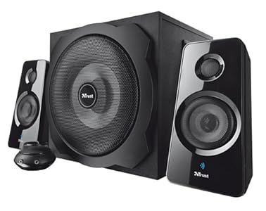 Trust Tytan 2.1 Bluetooth, Conjunto de altavoces 2.1 inalámbricos, Potente sonido, calidad de audio de gama alta, opciones de conectividad cableada o inalámbrica y un atractivo diseño: el conjunto Tytan 2.1 es lo último en conjuntos de altavoces para su smartphone, tablet, ordenador portátil, PC o televisión.