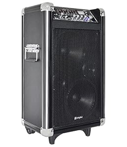 Sistema PA activo portátil con entradas SD y USB y EQ maestro de 7 bandas. Funcionacon corriente eléctrica, batería de 12 V, o batería recargable. Un micrófono inalámbrico y un micrófono con cable suministrados. • Conexiones: 2 x entradas de micrófono de 6,3mm (frontal), 1x jack de 6.3mm de entrada de instrumento (frontal), entrada USB (frontal),entrada SD (frontal), entrada de línea RCA estéreo, terminal parala conexión a una batería de 12V • Sección independiente de control de MP3• Micrófono ajustablepor separado, instrumento y volumen maestro• Efecto de eco del micrófono ajustable y ecualizador de 2 bandas del micrófono • Guardias y esquinas de metal protectoras• Indicador de carga para la batería• Formatos de lectura: MP3• Respuesta de frecuencia: 70 Hz a 20 kHz• Duración de la batería interna: aprox. 3 horas cuando está completamente cargado • Fuente de alimentación: 230V/50Hz o batería de 12V o 12V/2.6Ah• Fuente de alimentación (micrófono inalámbrico): 2 x pilas AA (no incluidas) > • Sistema de sonido portátil• Micrófono inalámbrico• Cable para micrófono• XLR a cable jack de 6.3mm • Cable de alimentación• Manual de usuario en inglés (otros idiomas: Alemán y más)• Ten en cuenta que la memoria USB o tarjeta SD no están incluida en elsuministro. > • 39 x 67 x 26cm• Longitud del cable del micrófono: 3 metros• Longitud del micrófono inalámbrico: 26cm• Longitud de micrófono con cable: 17cm• Peso de micrófono inalámbrico: 280 • Peso del micrófono con cable: 350g• Peso: aprox. 17kg