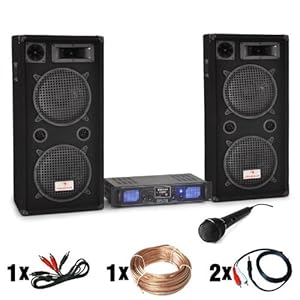 DJ-27 Sistema de sonido 2000W Amplificador PA Altavoces USB SD MP3 El equipo DJ PA "DJ-27" con amplificador PA DJ HiFi Skytec SPL-700 es una apuesta segura si se trate de fiestas y eventos de tamaño pequeño o medio. La potencia de salida de 2000 W del conjunto y sus dos altavoces de 3 vías bass reflex con subwoofers de 12 pulgadas (30 cm) te ayudarán a lograr el mejor sonido para bodas, fiestas familiares o eventos de trabajo. Las entradas USB y SD del amplificador Hi-Fi te permiten reproducir archivos MP3 de manera sencilla. Indicado para eventos de hasta 250 personas La combinación del amplificador de DJ de gran alcance para discoteca y los altavoces de fácil transporte, así como el juego de cables que te ofrece una amplia gama de conexiones convierten a este set en la configuración perfecta para tu fiesta. A diferencia de otros sistemas profesionales de alta tecnología complejos, el lema principal de este equipo es "enchúfalo y que empiece la fiesta! Gracias a su funcionamiento intuitivo y a los canales ajustables por separado, podrás llegar a tu gente sin molestar a quienes no estén en la pista de baile con niveles de potencia desproporcionada.Recomendaciones de uso:• Indicado para eventos de hasta 250 personas• La solución ideal para tu fiesta• Enchufar y listo con el diseño genial e intuitivo de este setContenido del equipo:• 2 x altavoces Auna 3 vías PW-2222 2x12" 1000W• 1 x amplificador PA DJ HiFi Skytec SPL-700 MP3, USB, SD. 700W• 1 x cable de altavoces 2 x 1,5mm², 10m transp. / + Kz• 1 x micrófono dinámico multiusos DMM-1280• 2 x conectores jack de 3,5mm para auriculares a RCA• 1 x cable de 2 metros audio RCA doble canal estéreo entrada/salida 4 clavijas