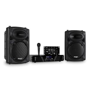 Completo equipo de sonido especial para fiestas con 2 compactos altavoces PA,mesa de mezclas adecuada para principiantes y amplificador. Incluye micrófono y todos los cables de conexión necesarios. Altavoces con carcasa ABS y amplificador y mesa de mezclas de metal adecuadospara módulo rack. • Conexiones de la mesa de mezclas: 2 x entrada de micrófono jack de 6,3mm, 2 x entrada de phono/línea RCA estéreo, entrada de CD RCA estéreo, salida de amplificador RCA estéreo, 1 xsalida de auriculares jack de 6,3mm• Conexiones del amplificador: entrada de línea RCA estéreo, 2 x entrada de línea jack de 6,3mm, salida de altavoces XLR, 2 x salida PA, 2 x juego de terminales de altavoz• Conexiones de los altavoces: entrada PA, salida PA• Potencia del amplificador: 2 x 240W (4 ohmios), 2 x 160W (8 ohmios)• Amplificador THD: >0,5%• Amplificador SNR: >98 dB• Potencia máxima de los altavoces: 500W• Respuesta de frecuencia de los altavoces: 50 Hz - 20 kHz• Fuente de alimentación de la mesa de mezclas: AC 230-240V, 50Hz o vía 12V (cable de alimentación incluido)• Fuente de alimentación del amplificador: AC 230V, 50/60Hz • Amplificador• Cable de alimentación (amplificador)• Mesa de mezclas• Cable de alimentación (mesa de mezclas)• Micrófono• Cable de montaje• 2 x Altavoz• 2 x Cable conector PA• Manual de instrucciones en español, alemán, inglés y francés • Mesa de mezclas: 23 x 3,5 x 13cm (Ancho x Altura x Profundidad)• Altavoces: 32 x 45 x 30,5cm (Ancho x Altura x Profundidad)• Amplificador: 48 x 9 x 29cm (Ancho x Altura x Profundidad)• 19" - 2HU• Peso total aproximado: 25kg